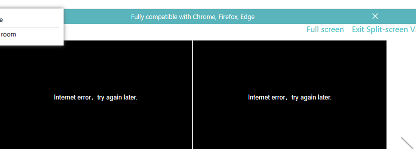 Split screen view "Internet Error, try again later"