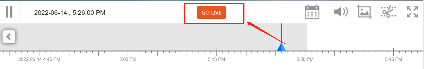 Hi, Please tap the "GO LIVE" back to the live stream when you view the alert events video.